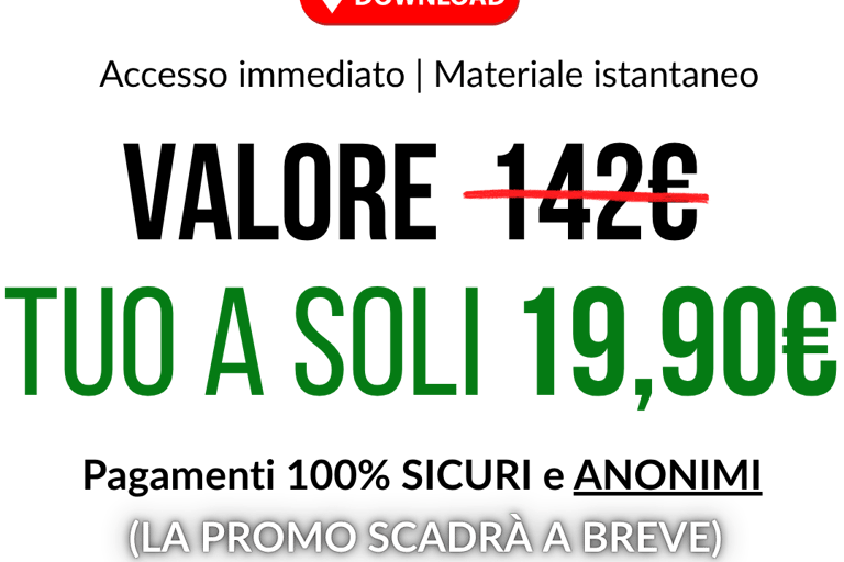 Dopo l’acquisto riceverai tutto direttamente via mail. File in PDF, chiari, leggibili ovunque (anche dal telefono).