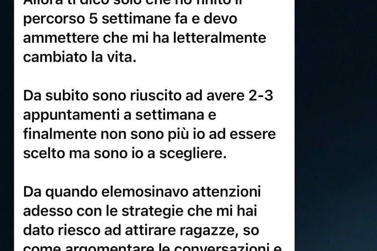 Capito. È normale. Ma ti bastano le frasi e gli approcci giusti per passare da invisibile a interessante senza mai sembrare disperato o forzato. Ti guidiamo passo-passo.
